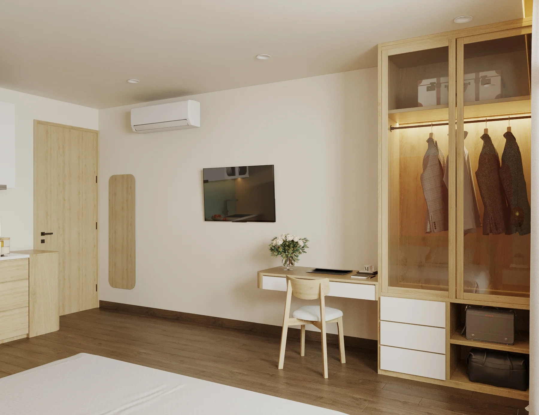• Facilites: Free Wi-Fi, Hairdryer, Electric kettle, Cooking stove (1 pot, 1 pan), Basic kitchen utensils, Desk, Microwave oven, Minibar, Electric stove, Air conditional, Fridge, Wardrobe for clothes